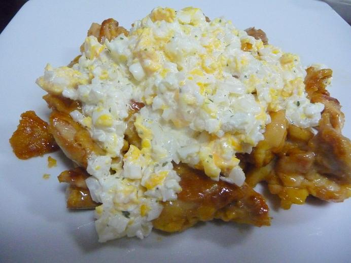 盛り付け皿にチキンを乗せ、タルタルソースをかければ完成です。