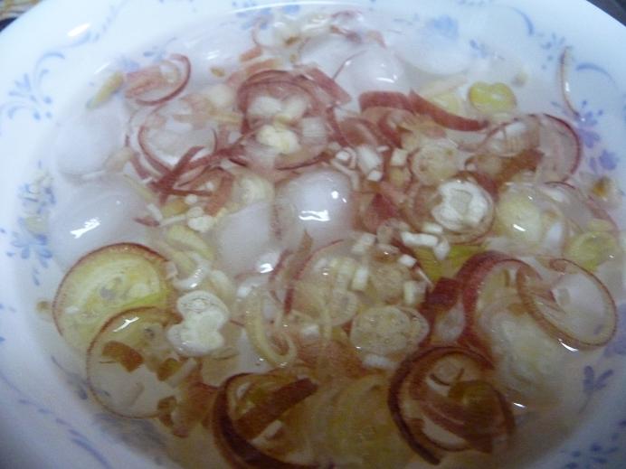 冷水に浸すことで、しゃきっとして独特の苦みが少し丸くなります。