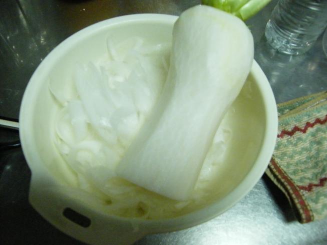 大根の皮をむきます。