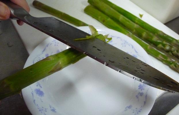 アスパラの筋を落とします。