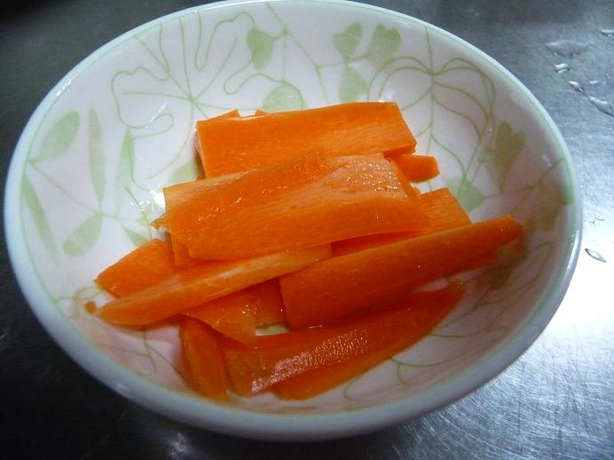 にんじんは軸方向に半分に切ったものを薄切りにしておきます。