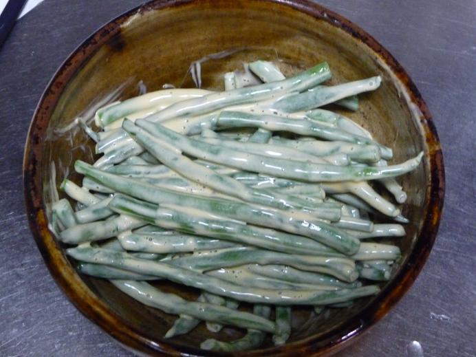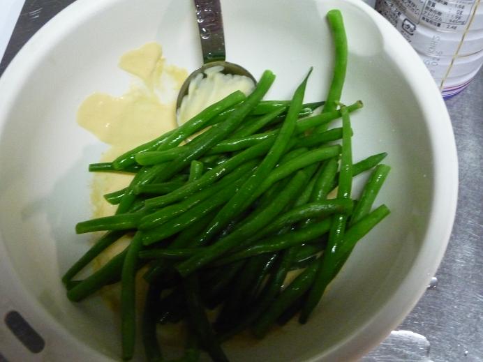 マヨネーズソースが程よくからみ、後味はいんげんの味をしっかり感じられる一品です。