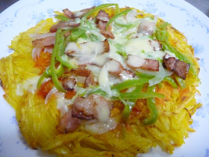 外見はピザのように見えますが、土台にジャガイモを使っています。