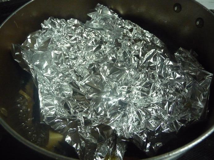 - 煮立たせたら落とし蓋をして中火で煮詰めていく。