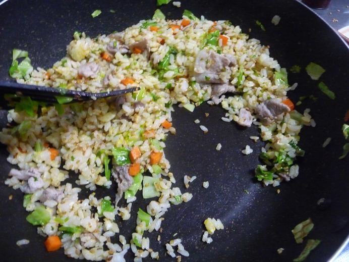 同じ様に、少しまって炒めるを数回すると、ご飯全体がパラパラになります。