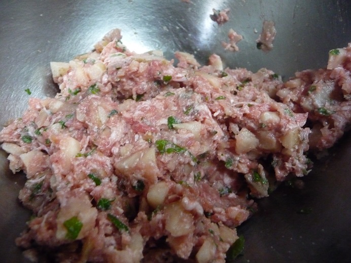2、タネをつくって皮で包む