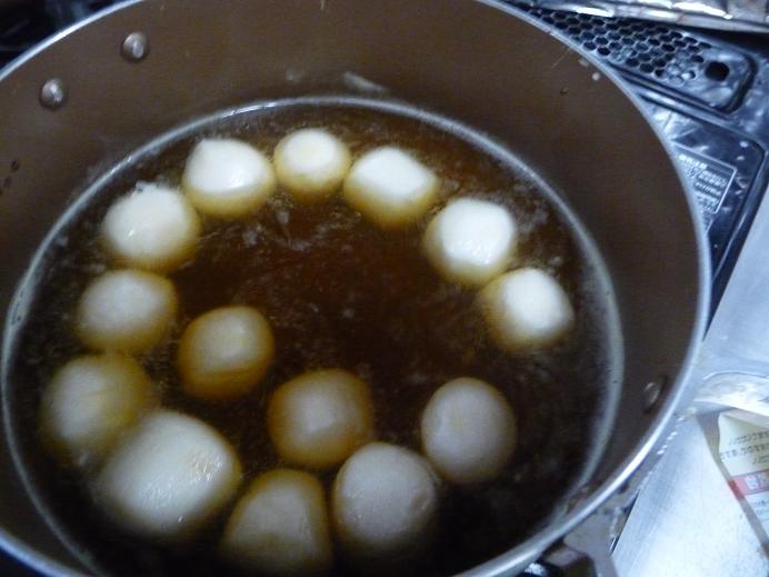 - 鍋に調味料★を煮立たせたら、一度火を止め冷凍里芋をいれる。