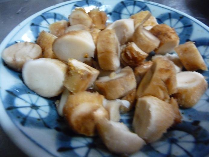 - いしづきは輪切りにする。(⇒傘は味噌マヨネーズ焼きにしました。)