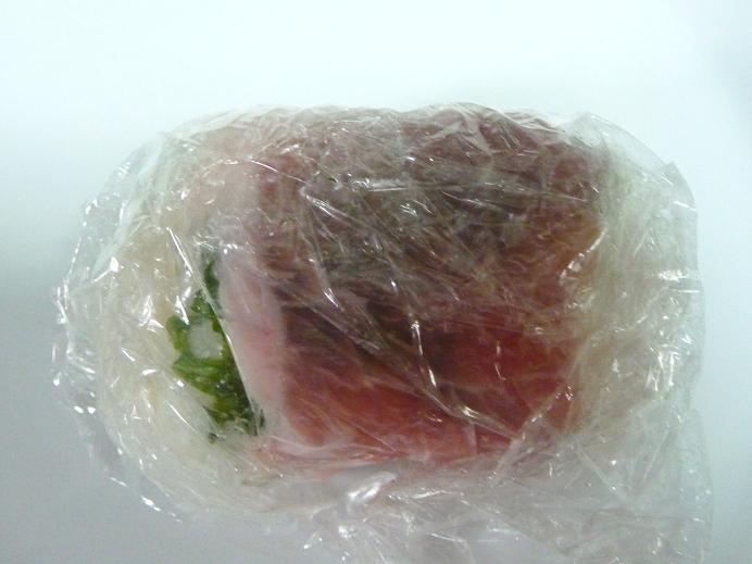 6等分に分け、ラップでギュッと俵型にします。