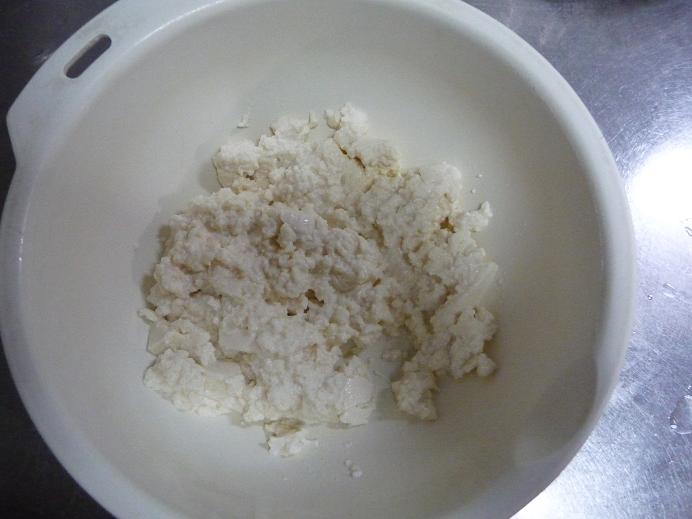 (真上からどばっといれたら豆腐が割れてしまいました、注意です。)